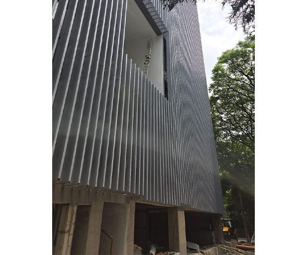GI Fins Description-Extending outward from the exterior façade, vertical fins are architectural elements that are both aesthetic and functional. These vertical fins create a unique visual appeal while providing solar shading and ventilation. Slight undulations in the fin depths can create interesting free flowing patterns adding depth and perspective to an otherwise flat building façade.